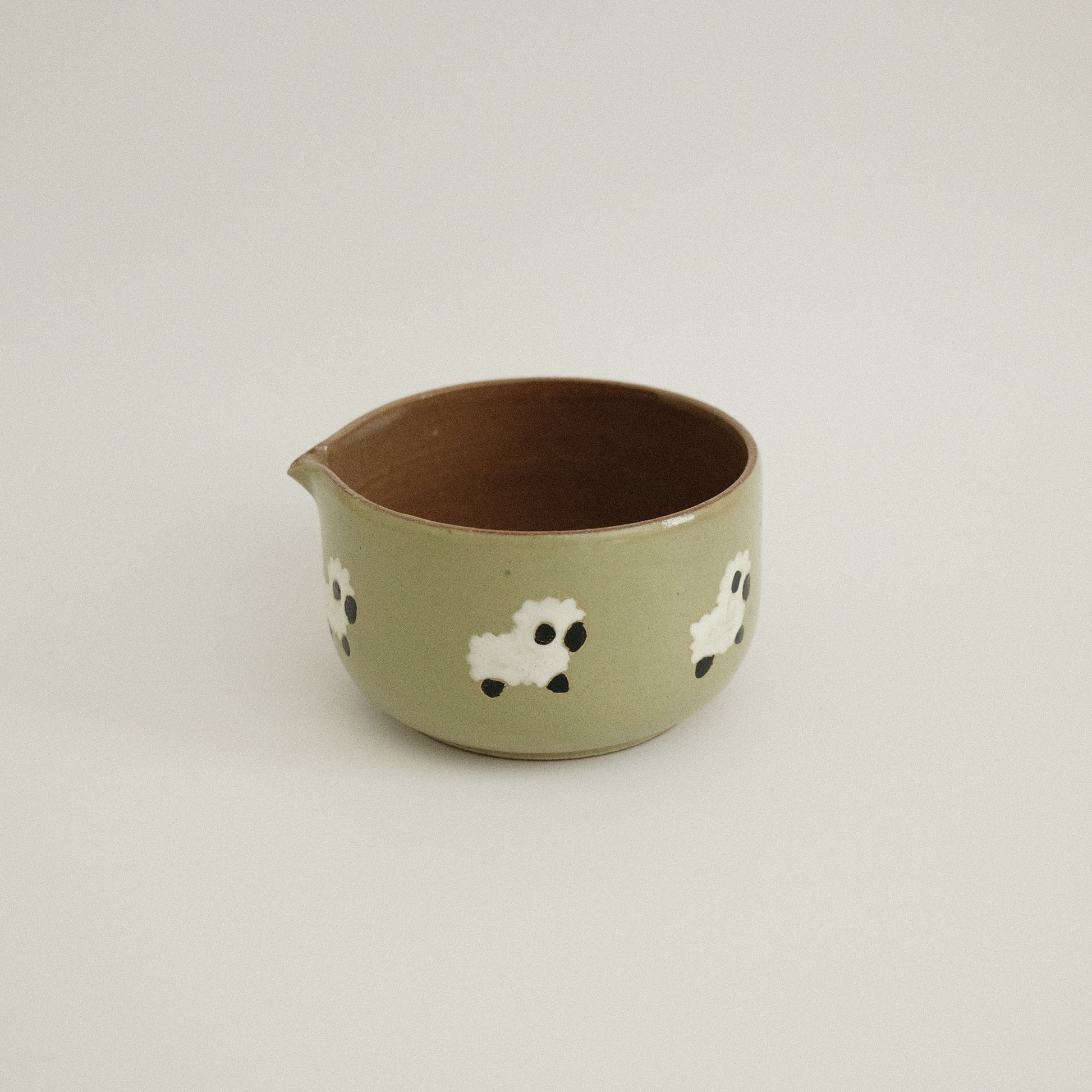 each of my pieces is handmade with love in san diego, ca. starting as a ball of clay, it's thrown on the wheel and left to air-dry just enough (usually 1-2 days). after trimming and adding special touches (bunnies... handles... doodles..), it's fired in the kiln. then, glazing process begins. once glazed the final firing can begin. seeing what a piece looks like after the final fire is always so exciting as ceramics is extreamly unpredictable and no two pieces will ever be exactly alike.