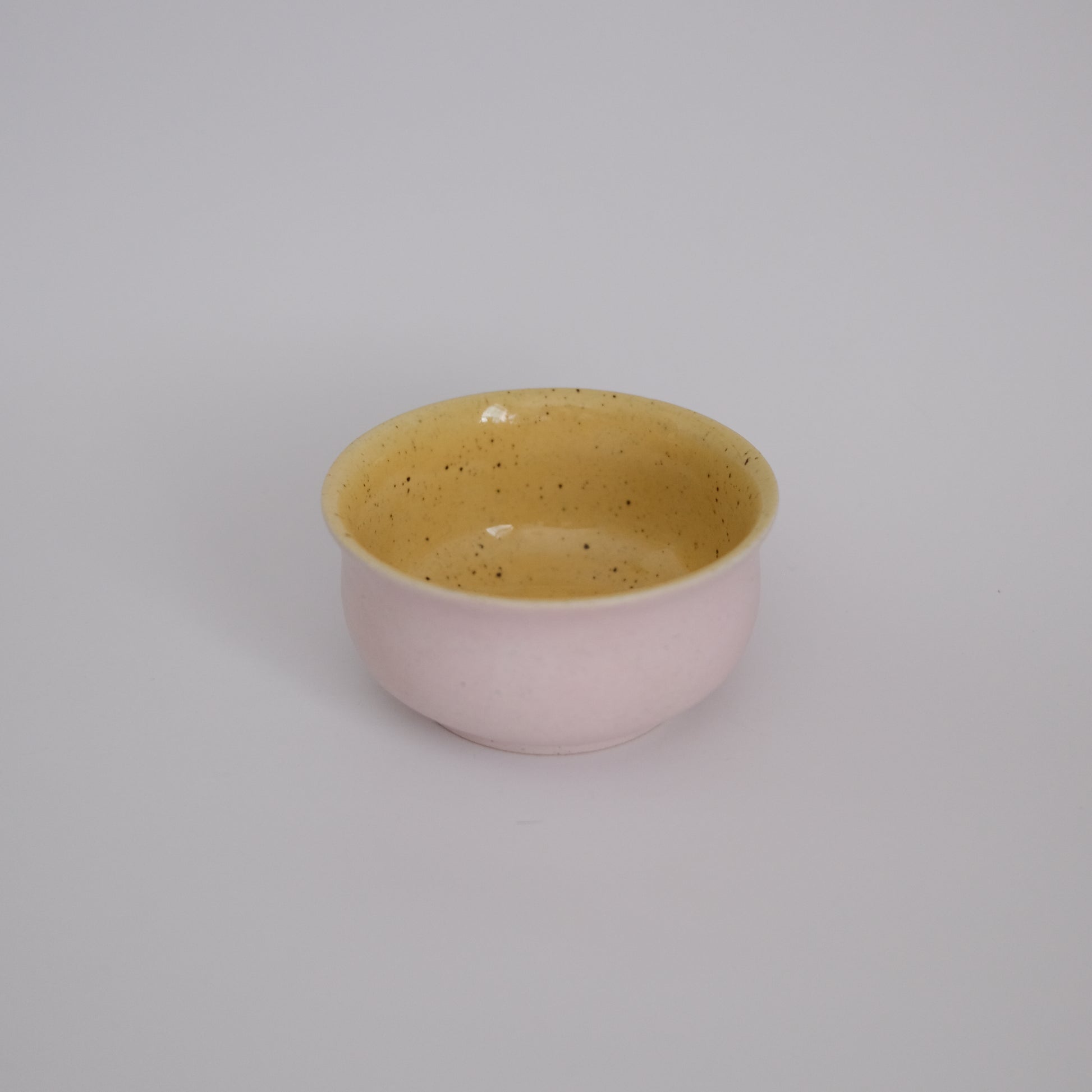 wheel thrown speckled stoneware. glazed with a satin pink exterior and a glossy yellow interior. ideal for ikebana ♡