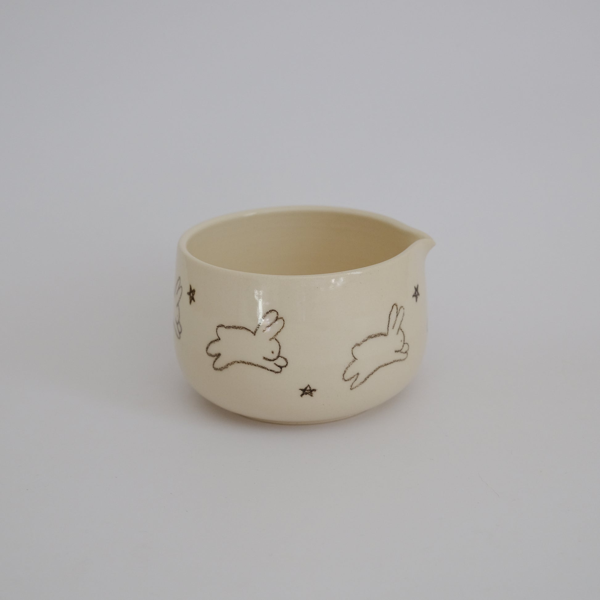 each of my pieces is handmade with love in san diego, ca. starting as a ball of clay, it's thrown on the wheel and left to air-dry just enough (usually 1-2 days). after trimming and adding special touches (bunnies... handles... doodles..), it's fired in the kiln. then, glazing process begins. once glazed the final firing can begin. seeing what a piece looks like after the final fire is always so exciting as ceramics is extreamly unpredictable and no two pieces will ever be exactly alike.